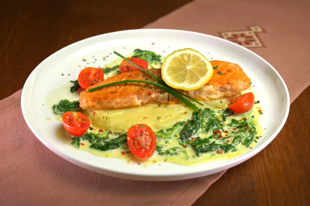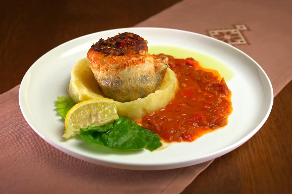 25.80€Lachsfilet, Butter, Zitrone, Kartoffeln, Milch, Sahne, Parmesan, MuskatnussZanderfilet mit Gemüse-Tomatensoße und Kartoffelpüree