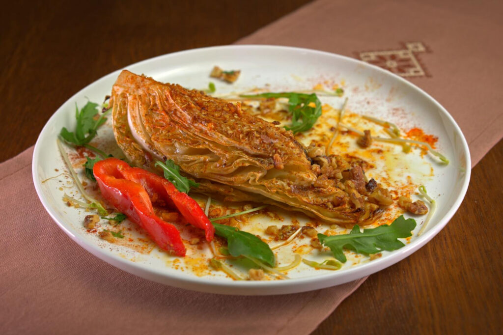 6.00€Salzkartoffeln mit Pflanzenöl und DillSteak aus Weißkohl mit Walnüssen und Senf-Dressing vegetarisch