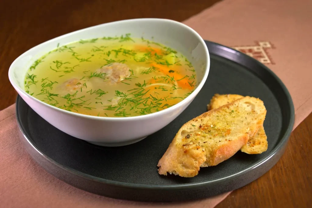 10.00€Rindfleisch, Schweinefleisch, geräucherte Wurst, Würstchen, Fleischbrühe, Tomatenkonserve, Zwiebeln, Gewürzgurken, Zitrone, SchmandSuppe mit hausgemachten Fleischbällchen