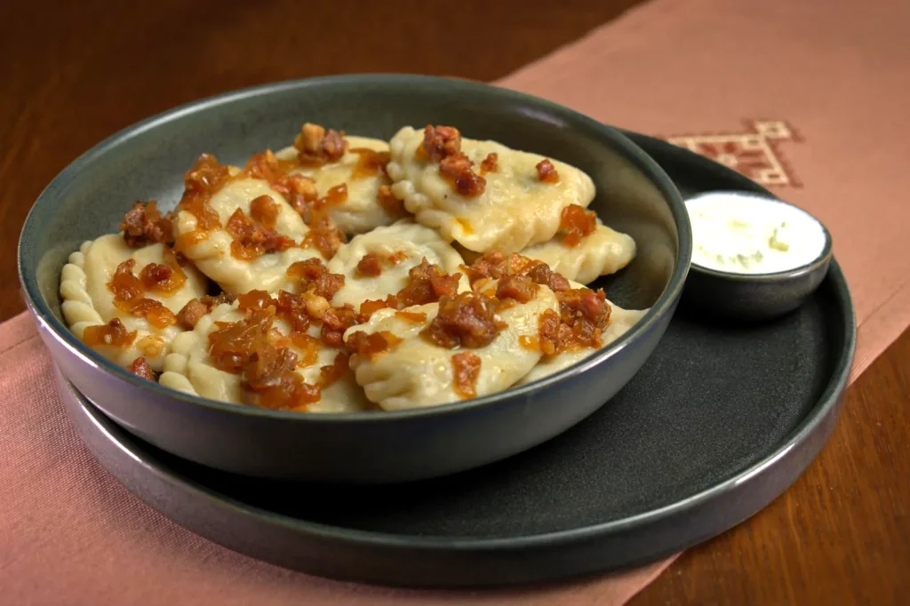 Warenyky mit Kartoffeln, gebratener Zwiebel