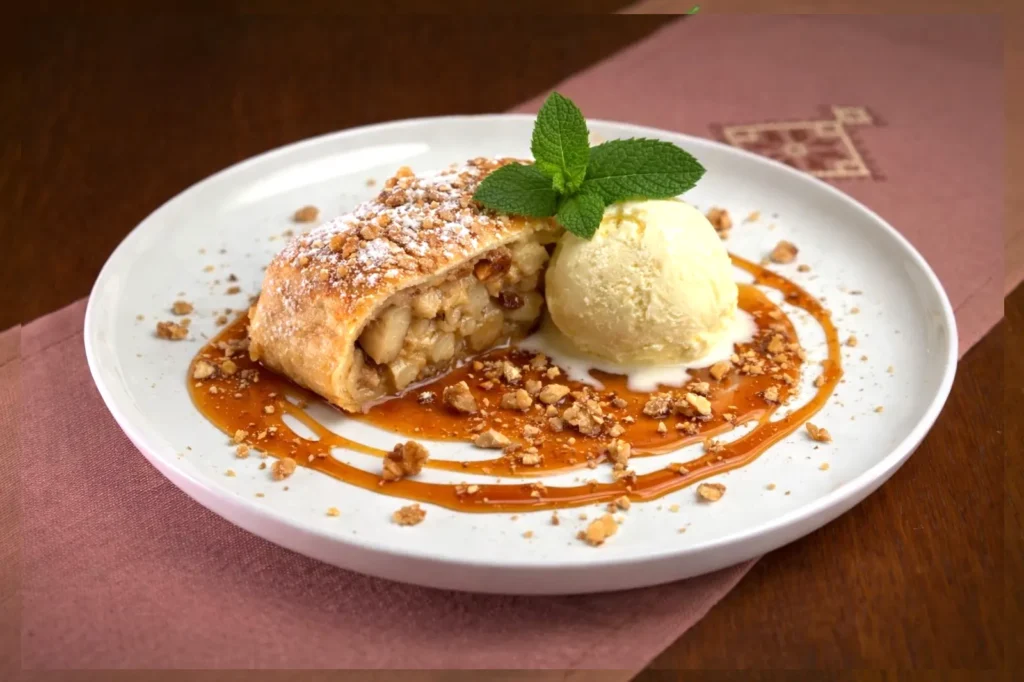 Яблучний штрудель з морозивом вегетаріанський