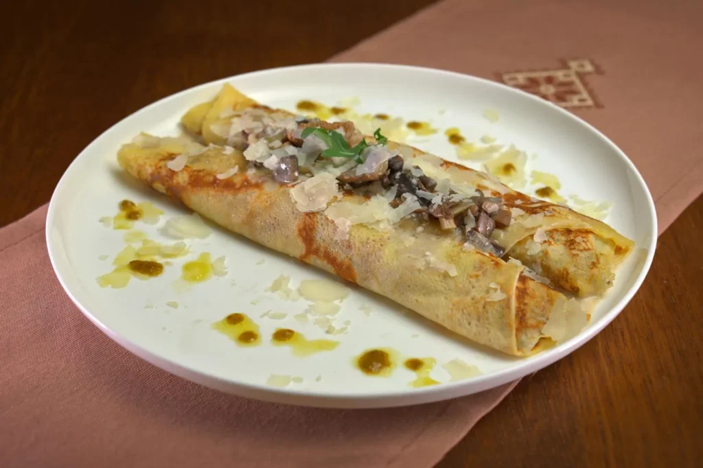 6.00€Свиняче м’ясо, курячі яйця, панірувальні сухарі, картопля, молоко, вершки, курячі яйця, пармезан, лимон, грибний соус, мускатний горіхКартопля фрі вегетаріанські