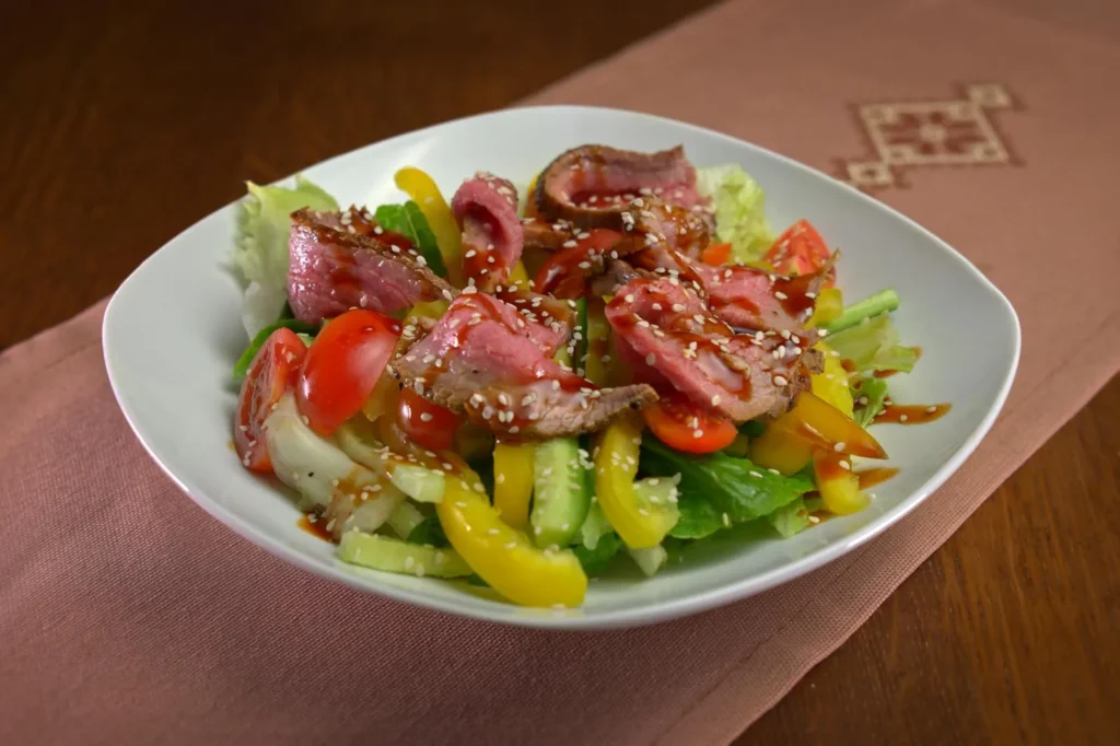 Теплий салат із яловичини з теріякі-соусом